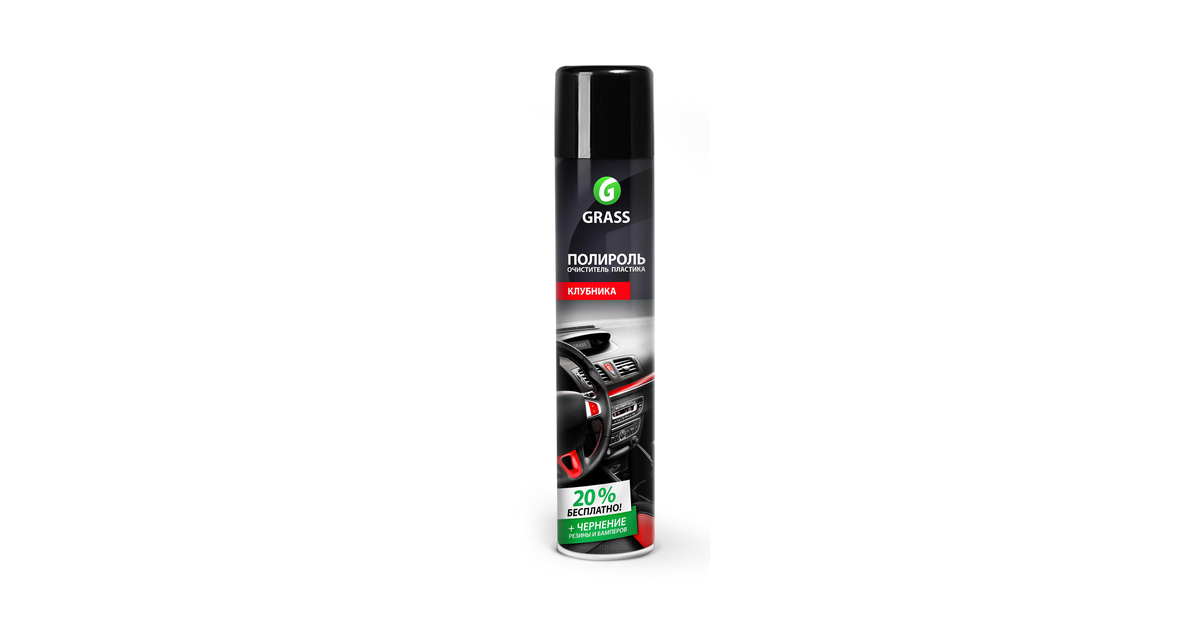 Профессиональный аэрозоль для полировки и придания глянцевого блеска пластиковым, кожаным и резиновым элементам отделки салона автомобиля. Может использоваться как смазочный материал в мелких механизмах и для полировки шин. Препятствует появлению жирных пятен и оседанию пыли. Обладает приятным ароматом клубники.