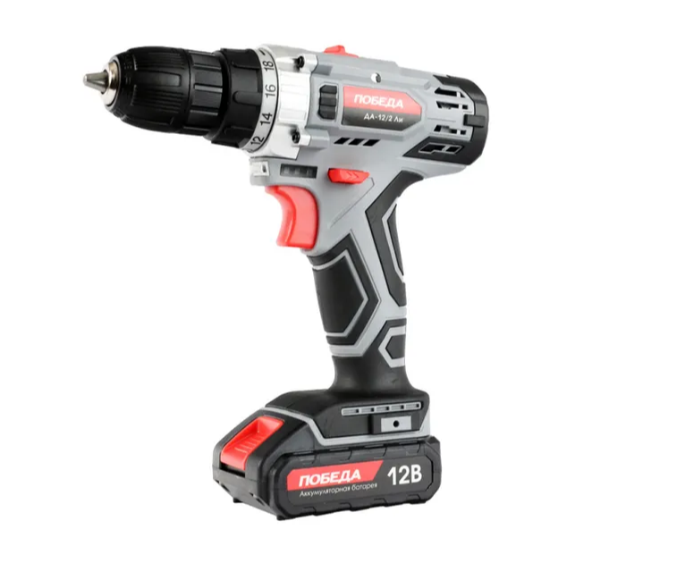 Аккумуляторная дрель-шуруповерт ПОБЕДА ДА-12/2 Ли предназначена для работ с крепежными элементами и сверления отверстий в различных материалах.