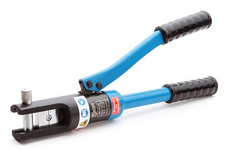 Пресс гидравлический предназначается для профессионального обжима наконечников из меди и алюминия сечением 10-120 мм². Инструмент состоит из усиленной рабочей части, неподвижной ручки и рычага с удобными накладками для уверенного обхвата в процессе выполнения электромонтажных операций.