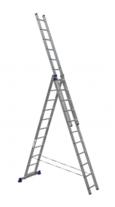Трехсекционная универсальная алюминиевая лестница высотой 7,02м. - это многофункциональное приспособление для разных работ. Может использоваться в приставном варианте, как двухсекционная лестница, а так же в качестве стремянки и в виде раздвижной, телескопической конструкции. Комплектуется страховочными ремешками, что повышает безопасность работ. Двухкомпонентные наконечники, которыми оснащены опоры, защищают лестницу от скольжения во время работы.