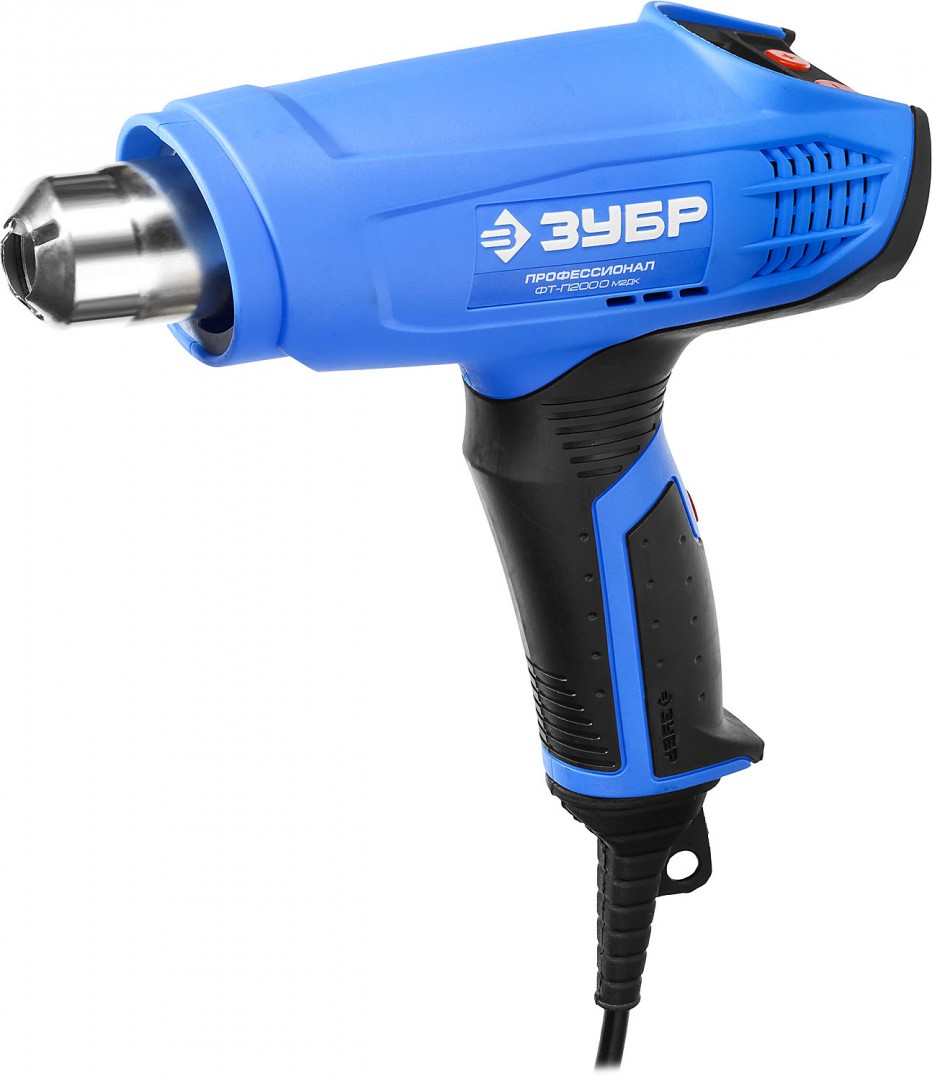 ФЕН СТРОИТ. "ЗУБР" "ПРОФЕССИОНАЛ" ФТ-П2000 М2Д 2кВт.80-600гр., 350-550л/мин ЖК-дисплей. 2режима,нас