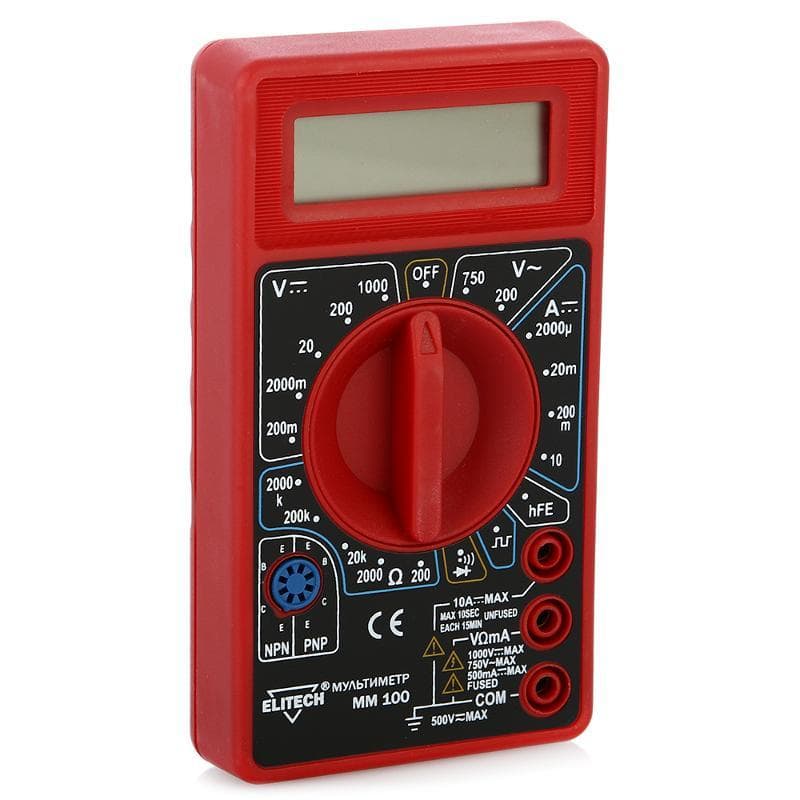 Мультиметр Elitech ММ 100 служит для измерения постоянного и переменного напряжения, постоянного тока, сопротивления, а также для проверки полупроводниковых диодов и прозвонки электрических цетей. Он оснащен небольшим дисплеем, на который выводятся результаты измерений. Модель проста и удобна в обращении, а также защищена от перегрузки.