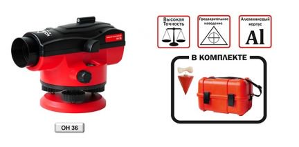НИВЕЛИР ОПТИЧЕСКИЙ "ELITECH" ОН 36 кратность36х,объектив40мм,±1.5мм/1км,мин.фокус 0.6м,отвес,ключ,кейс