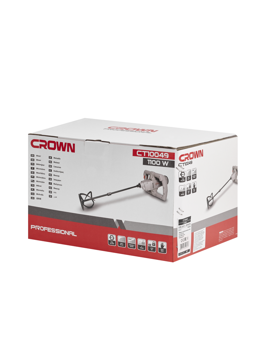 Профессиональный двухскоростной строительный миксер CROWN CT10049 имеет мощный двигатель, обеcпечивающий продолжительную работу.