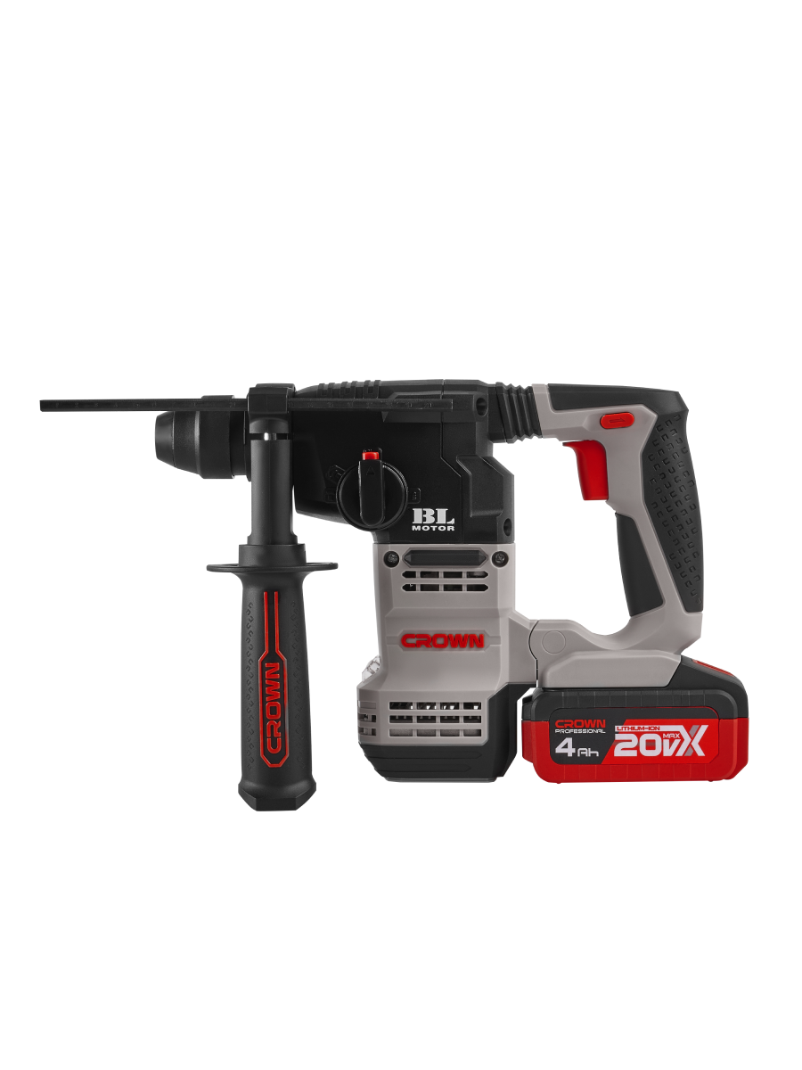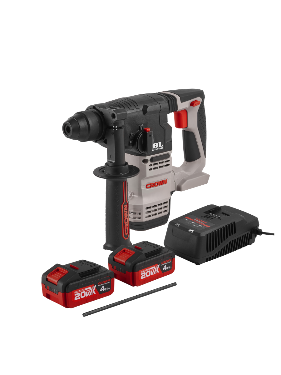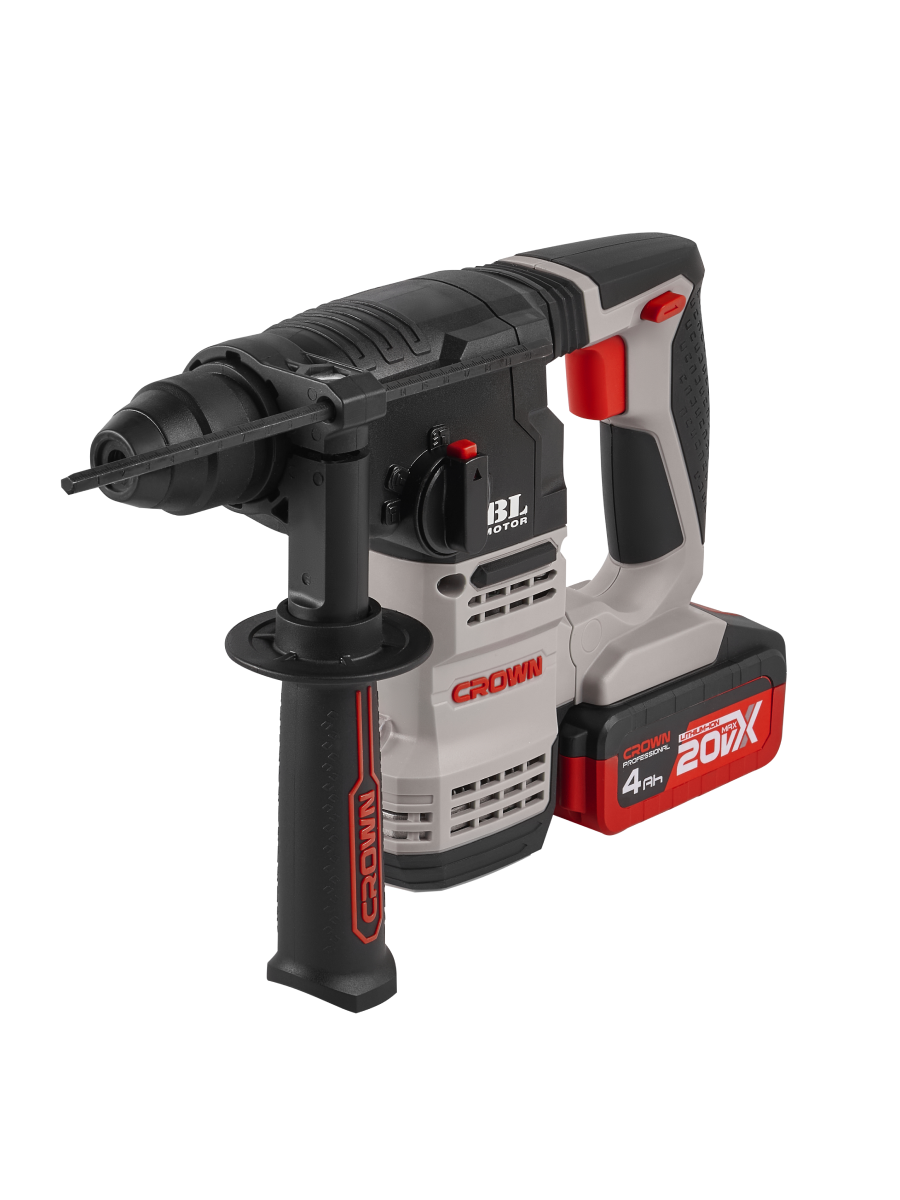 ПЕРФОРАТОР аккумуляторный "CROWN" CT28001HX-4 BMC 20В,18 мм,2,3 Дж,0-1400 об/мин