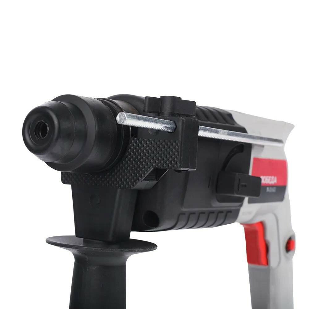 Перфоратор является инструментом среднего класса, оснащенным горизонтальным расположением двигателя. Устройство дополняется ограничителем глубины сверления и поставляется с дополнительной ручкой. Имеется удобная кнопка-блокиратор от случайного включения прибора.