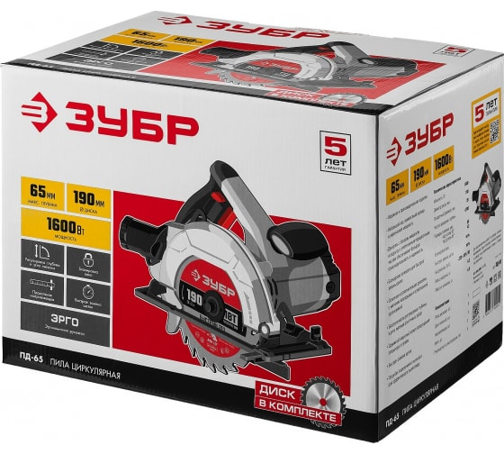 ПИЛА ДИСКОВАЯ "ЗУБР" ПД-65 4700об/мин 1600 Вт