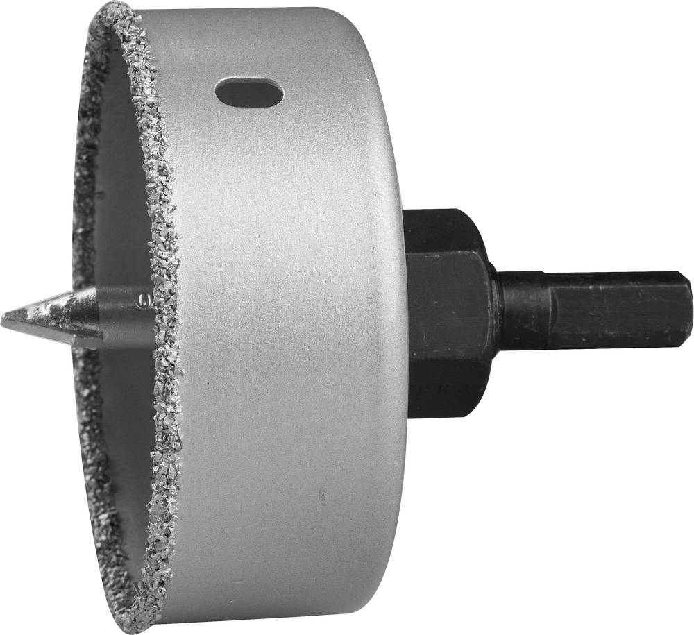 КОРОНКА-ЧАШКА "ЗУБР""ЭКСПЕРТ" с карбид-вольфрамовой крошкой,в сборе,высота 25мм,76мм (33360-076)