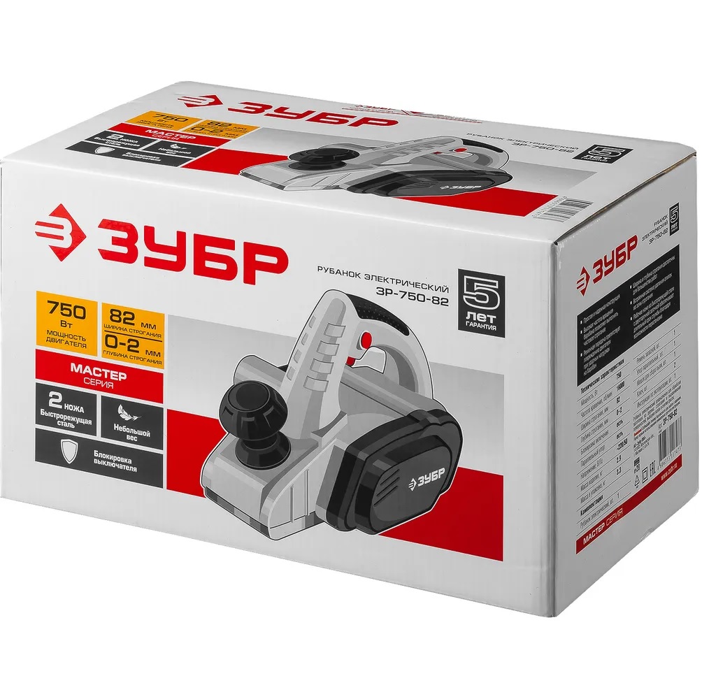 РУБАНОК "ЗУБР" ЗР- 750 750Вт. нож 82мм, глубина 0-2мм, 3,3кг