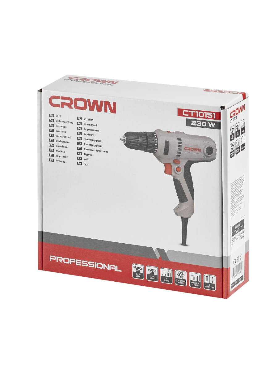 ДРЕЛЬ ШУРУПОВЕРТ СЕТЕВАЯ "CROWN" CT10151 230Вт, быстрозажимной патрон 10мм, реверсивная