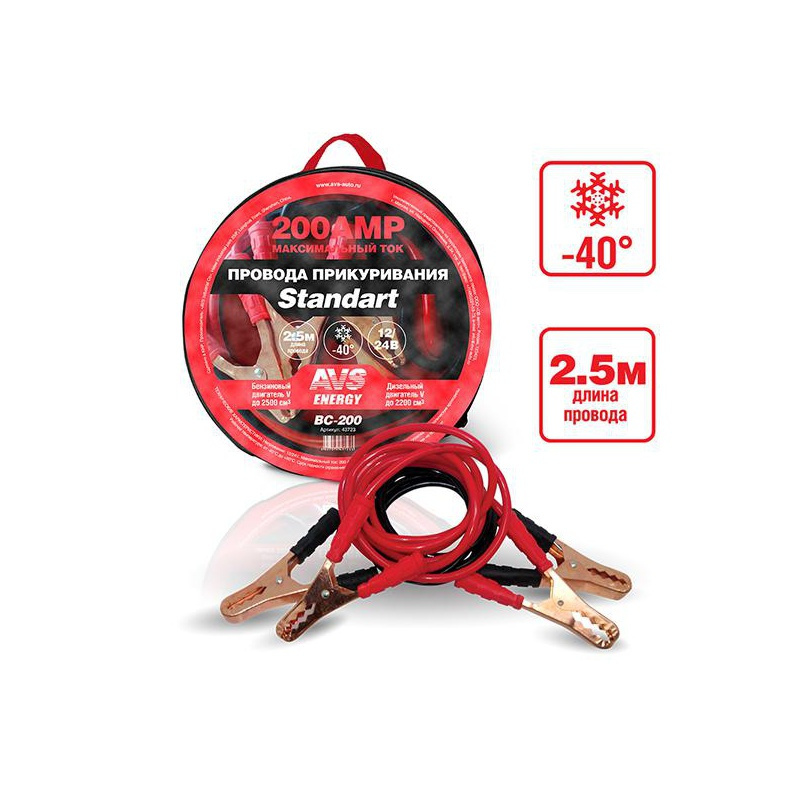 Пусковые провода AVS Standart BC-200, 200А, 2.5м (43723)