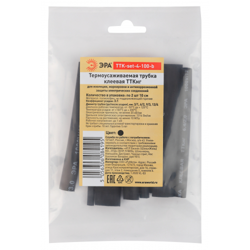 Набор термоусадочных трубок ТТК (клеевой) (3:1)3,6,9,12 "ЭРА" (Б0045219)