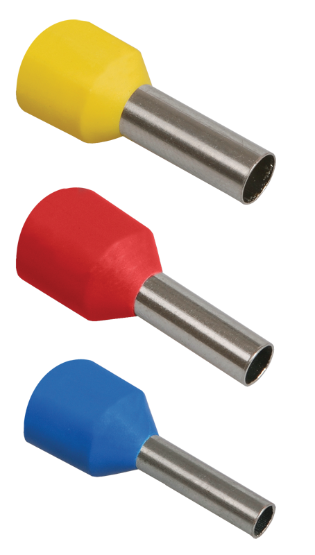Предназначены для оконцевания проводов и подключения их к контактным зажимам различного электрооборудования (клеммным блокам, автоматическим выключателям, зажимам наборным, розеткам и т.п.). Данный вид наконечников предназначен для оконцевания многопроволочных гибких проводов. Зачищенный конец многопроволочного провода заводится внутрь полой концевой трубки и затем опрессовывается вместе с трубкой при помощи специального инструмента, образуя единую конструкцию, надежно фиксирующую пучок многопроволочной жилы.