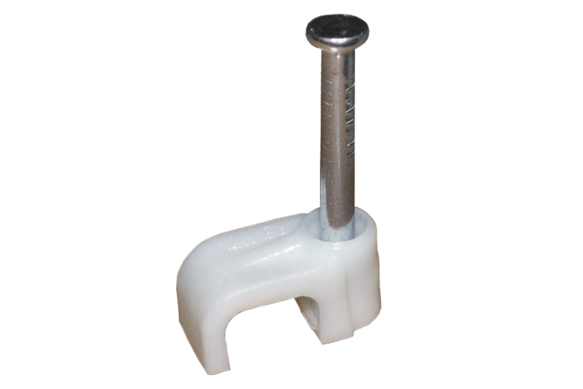 Скоба крепежная предназначена для быстрого и надежного крепления плоских кабелей. Скоба изготовлена из полипропилена, гвоздь - из стали с цинковым покрытием.