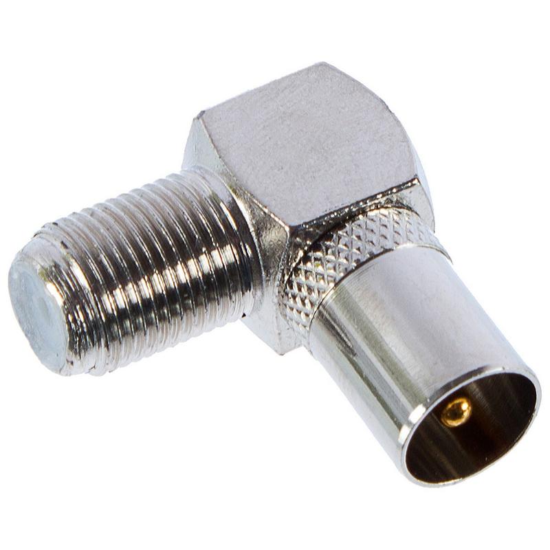 Переходник штекер F - гнездо F (угловой) используется для соединения двух радиочастотных кабелей или кабеля с оборудованием, имеющим F-разьемы, волновым сопротивлением 50 или 75 Ом.