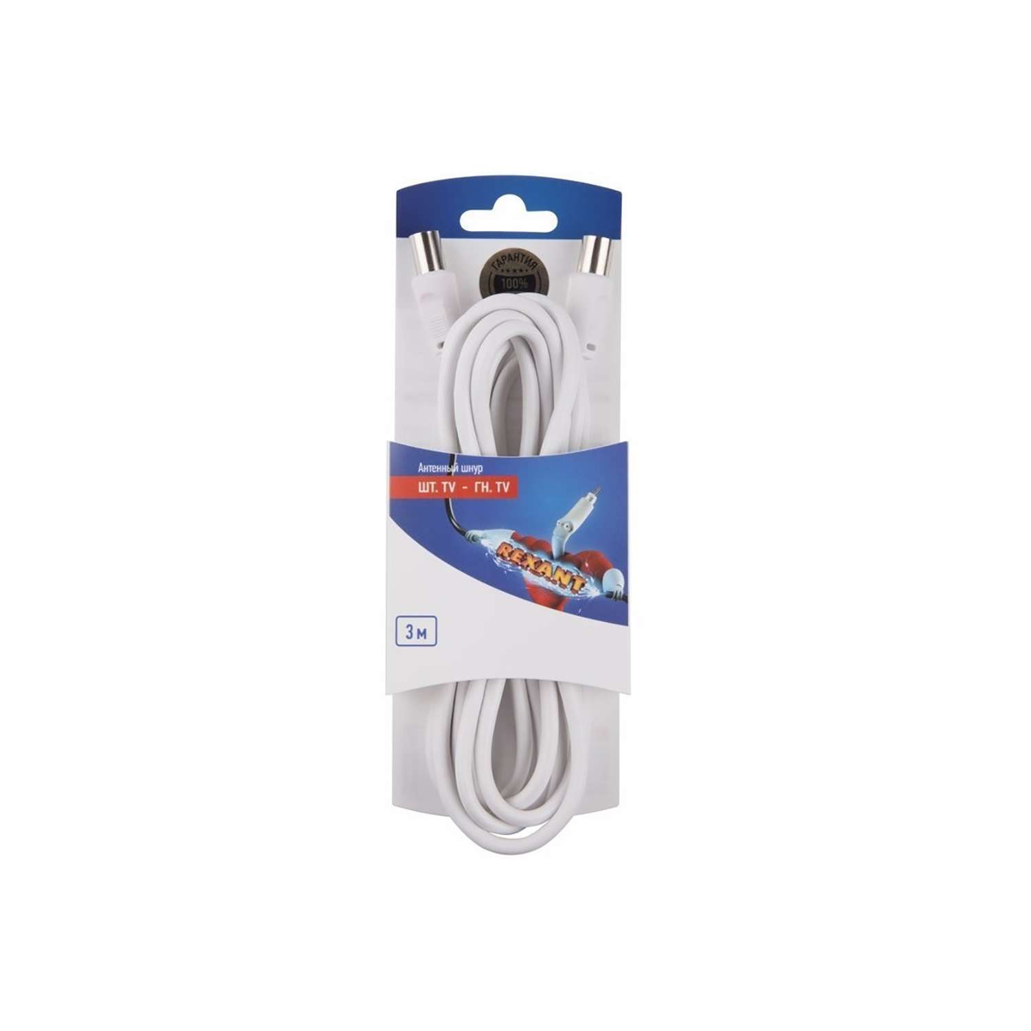 Шнур шт.TV - гн.TV, длина 3м, белый "REXANT" (06-3081)