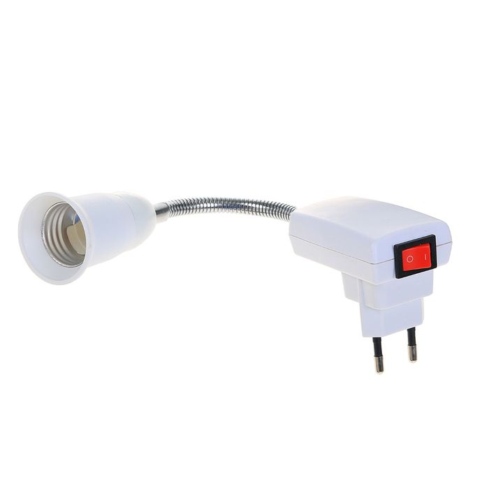 При установке лампы с цоколем E27 в этот переходник, он заработает как самостоятельный осветительный прибор при подключении к стационарной розетке.