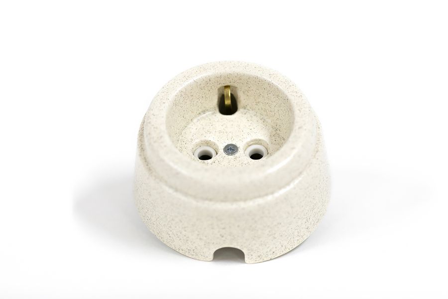 Розетка О/П З/К керамика (песчаник) (IN) "Арбат". Технические параметры позволяют применять данную электроустановку в сети электрического тока 220В с силой тока 16А. Основные отличительные технические качества у розеток - это контактная группа из латуни, и механизмы из пластика, который характерен высокой степенью надёжности.
