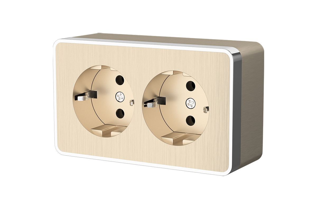 Розетка 2-я О/П з/к /шампань рифленый/ (WERKEL) (WL15-02-03) РАСПРОДАЖА