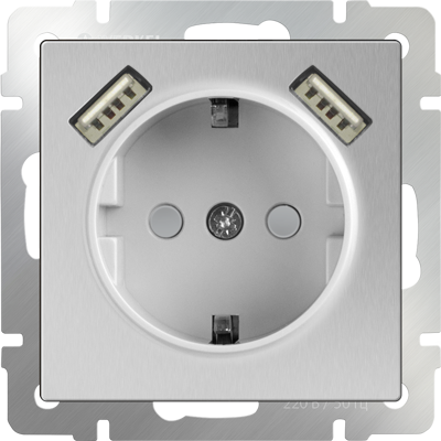 Механизм РОЗЕТКИ 1-мест+USB2. со шторкой (WERKEL) (серебряный) (WL06-SKGS-USBx2-IP20)РАСПРОДАЖА