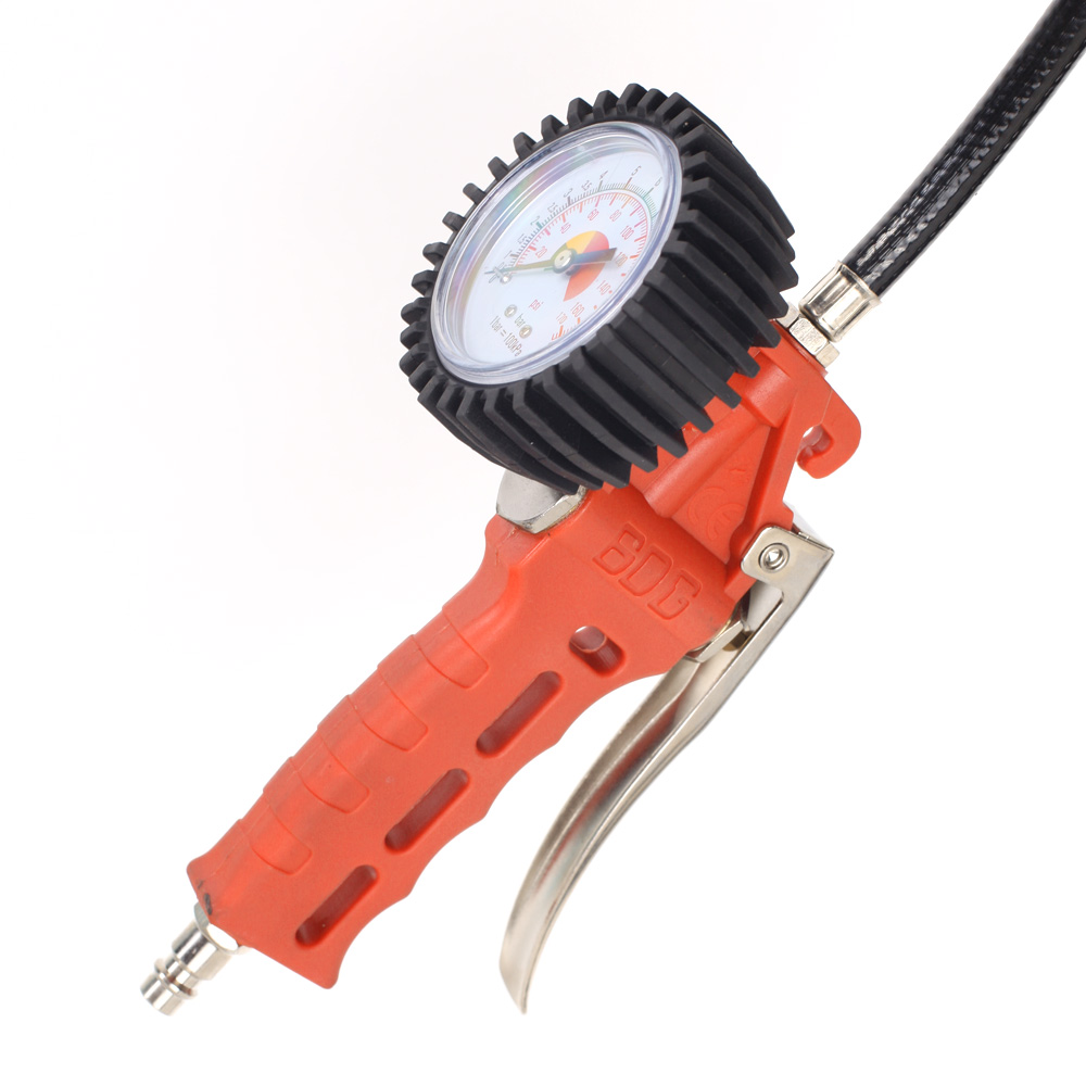 Профессиональный пистолет для накачки шин с клапаном сброса давления, с манометром Ø80мм (0-12бар), шлангом 800мм и наконечником 25/W.