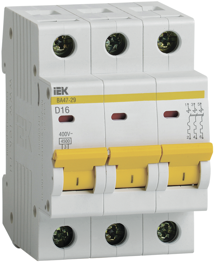 Выключатель автоматический 3п. 16А ВА47-29 х-ка D "ИЭК"