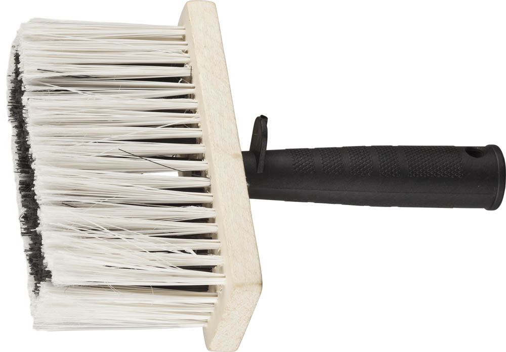 Макловица используется на больших поверхностях, например для нанесения грунтовки или побелки на потолок. Изделие состоит из искусственной щетины, деревянного бандажа и удобной пластиковой рукоятки. На ручке есть отверстие, за которое макловицу можно подвешивать на ведро.