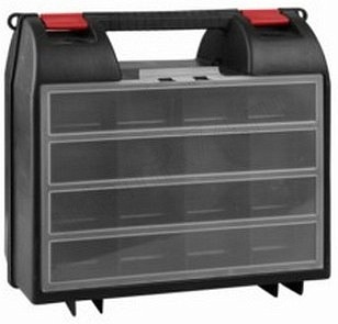Ящик используется при хранении и транспортировке мелкого инструмента и оснастки. Приспособление выполнено из прозрачного пластика, который отличается высокой прочностью, а благодаря прозрачной фактуре можно увидеть, какой именно инструмент в нем находится, не открывая для этого органайзер. Конструкция органайзера включает два запорных механизма для безопасности при хранении и переноске. Внутри ящика имеются отделения для мелочей, благодаря чему инструмент не перемешается и всегда будет под рукой.Размер:360х323х145мм.