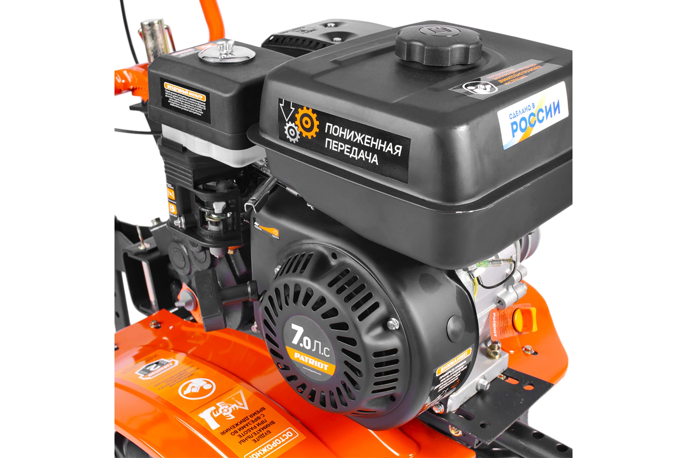МОТОБЛОК "PATRIOT" КАЛУГА М (чугунный редуктор)(поворотный руль)(4 вперед 2назад) 7 л/с,ширина 85мм