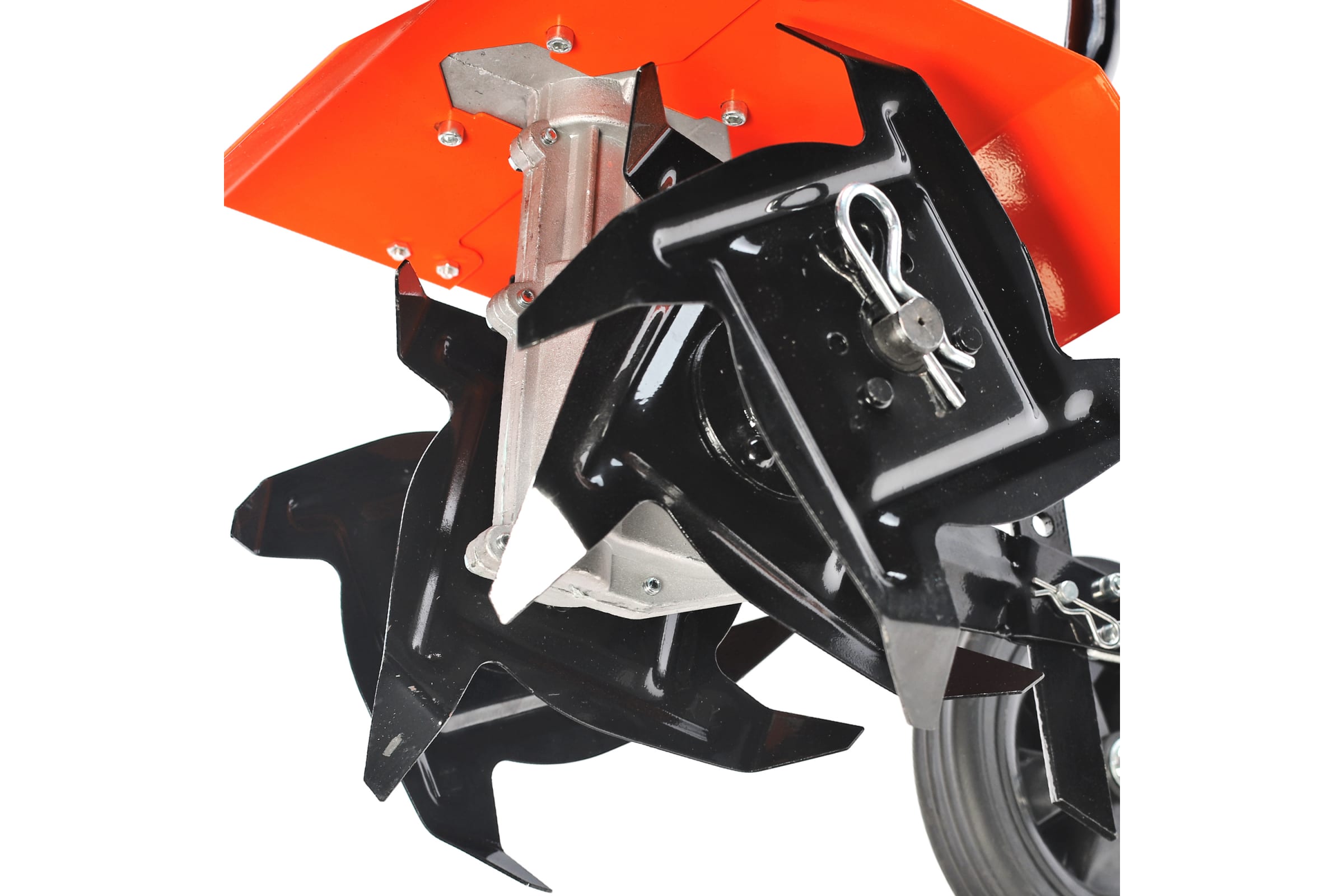 Бензиновый двухтактный культиватор с широкими транспортировочными колесами для рыхления и культивирования небольших участков земли. небольших участков земли. Оборудован двухтактным бензиновым двигателем мощностью 2,8 лошадиных сил.