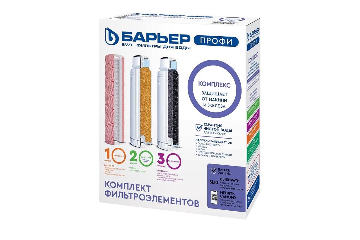 Комплект картриджей для фильтра под мойку БАРЬЕР ПРОФИ Комплекс, защищает от накипи и железа Р143Р00 эффективно удаляет как растворённое (двухвалентное), так и коллоидное (трёхвалентное) железо. Умягчают воду.