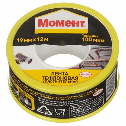 Тефлоновая лента «Момент» состоит на 100% из политетрафторэтилена (ПТФЭ), проста в применении, используется при сантехнических работах.