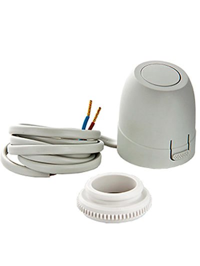 Привод для автоматического управления радиаторным или коллекторным термостатическим клапаном систем водяного теплого пола и охлаждения зданий по сигналу от термостата, датчика или контроллера. Действие основано на расширении жидкости (толуола) в сильфоне при протекании электрического тока через встроенный нагревательный элемент. Нормально открытый. Присоединение сервопривода к клапану – через переходник (в комплекте).