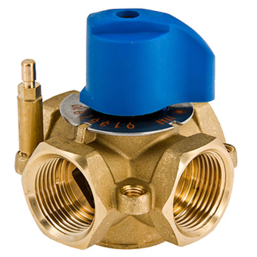 Предназначен для использования в смесительных и разделительных узлах гидравлических систем. Управление клапаном может осуществляться вручную или с помощью сервопривода с крутящим моментом не менее 5 Н•м (рекомендуется модель VT.M.106). Корпус и регулирующий элемент выполнены из латуни, что исключает возможность появления коррозионных отложений в рабочих зазорах. Уплотнение штока достигается с помощью двух колец из синтетического каучука EPDM PEROX. При этом верхнее кольцо легко заменить без полной разборки изделия. Клапан ремонтопригоден и состоит всего из четырех основных деталей, что повышает его надежность. Максимальная рабочая температура теплоносителя – 120 °C, нормативное давление – 10 бар. Резьба присоединений – внутренняя. Условные диаметры предлагаемых моделей – 3/4, 1, 1 1/4". Ручка управления входит в комплект.