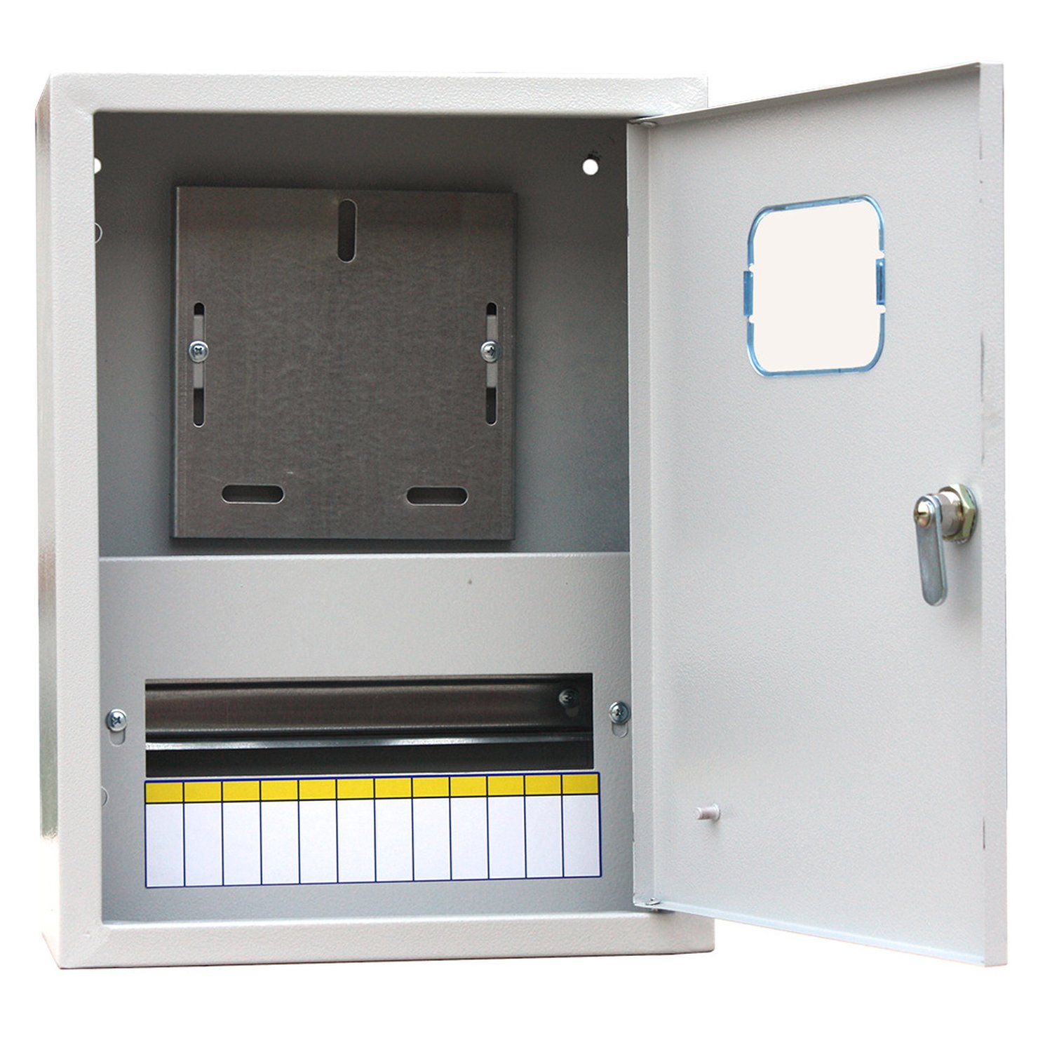 Щит учетно-распр. ЩРУ 1Н-12 - это прочное и долговечное приспособление, которое устанавливается в жилых или административных зданиях. Предназначен для установки однофазного счетчика и 12 групп автоматов. Корпус выполнен из стали с порошковым напылением. Замок на дверце позволяет закрывать щит на ключ. Тип монтажа навесной, крепление осуществляется на DIN-рейку.