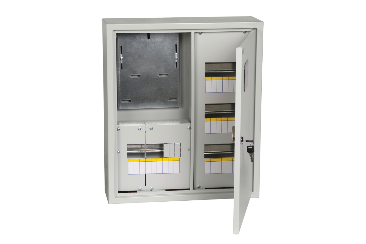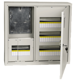 Щит учетно-распр. ЩРУн 3/42зо-1 38 предназначен для сборки учетно-распределительных электрощитов с использованием модульной аппаратуры, для ввода электроэнергии, ее учета и распределения, а также защиты сетей напряжением 230/400 В от токов перегрузки и короткого замыкания.