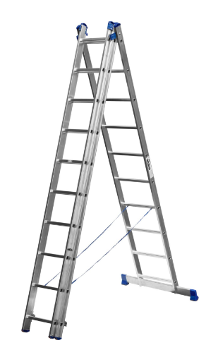 Трехсекционная универсальная алюминиевая лестница общей длинной 6,46м.- это многофункциональное приспособление для разных работ. Может использоваться в приставном варианте, как двухсекционная лестница, а так же в качестве стремянки и в виде раздвижной, телескопической конструкции. Комплектуется страховочными ремешками, что повышает безопасность работ. Двухкомпонентные наконечники, которыми оснащены опоры, защищают лестницу от скольжения во время работы.