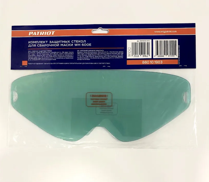 Стекло защитное для сварочной маски Patriot WH 600Е. Комплект 4 штуки: 3 шт-310х124 мм, 1 шт-122х66 мм.