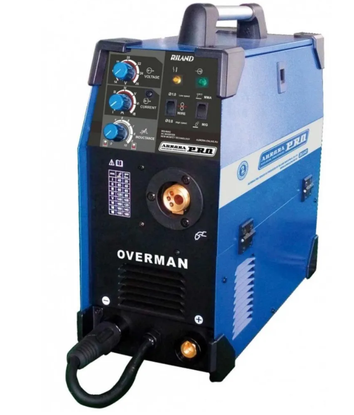 Сварочный инвертор AuroraPRO OVERMAN 185 предназначен для полуавтоматической сварки в среде защитного газа MIG-MAG, для работы с порошковой самозащитной проволокой в режиме NO GAS, а так же для ММА сварки покрытым электрдом.