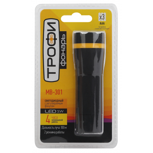 Фонарь "ТРОФИ" MB-301 (1Вт, регулируемый фокус, пластик) (Б0033750)