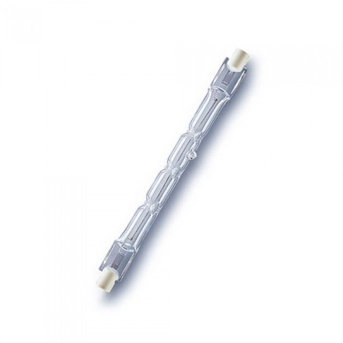 Галогенная линейная лампа. Лампа обеспечивает возможность эксплуатации от сетевого напряжения 220 В без использования понижающего трансформатора. Колба лампы изготовлена из прозрачного кварцевого стекла с добавками, экранирующими УФ излучение. Цветовая температура: излучаемого света около 3000 К. Средний срок службы – 2000 часов. Галогенные линейные лампы большой мощности применяются в прожекторах заливающего наружного освещения, а лампы менее мощные используются в современных торшерах, настенных светильниках внутреннего освещения.