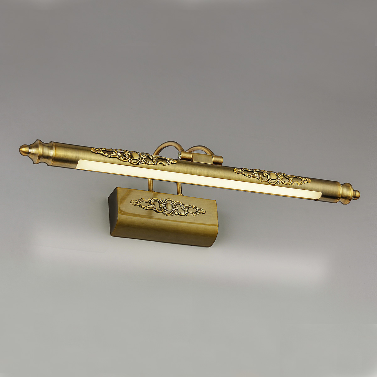 Сатинированная полировка придает особый лоск корпусу из нержавеющей стали. Бронзовое гальваническое покрытие и резные декоративные элементы превращают подсветку в роскошное украшение интерьера.