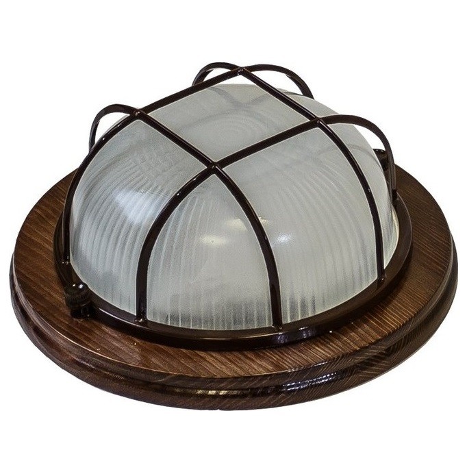 Светильник НБО 03-60-022 дерево, орех, круг с реш. 60Вт Е27 (+1+130)IP54(11574)