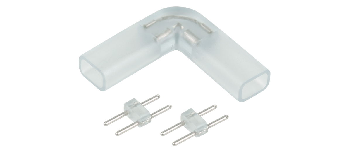 Переходник используется для соединения участков светодиодной ленты между собой. Материал переходника схож с материалом, из которого изготовлена оболочка ленты, благодаря чему он практически незаметен.