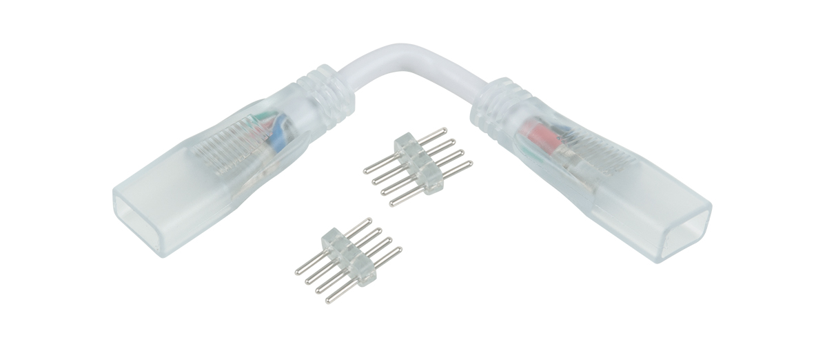 Переходник используется для соединения участков светодиодной ленты между собой. Материал переходника схож с материалом, из которого изготовлена оболочка ленты, благодаря чему он практически незаметен.
