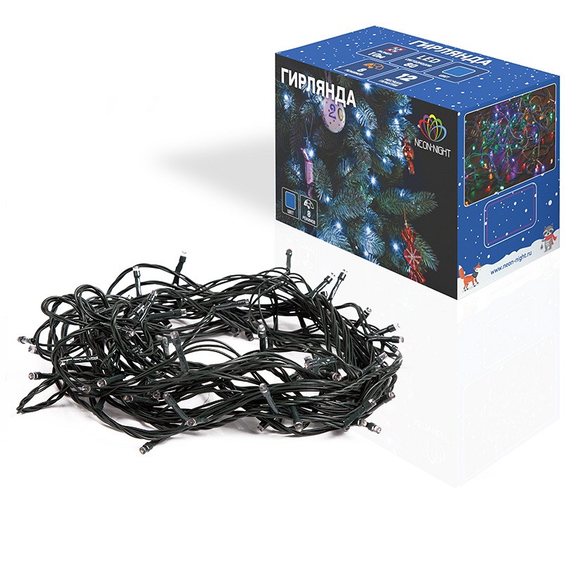 Гирлянда "Neon-night" "Твинкл Лайт" 10 м, темно-зеленый ПВХ, 80 LED, цвет белый (303-045)