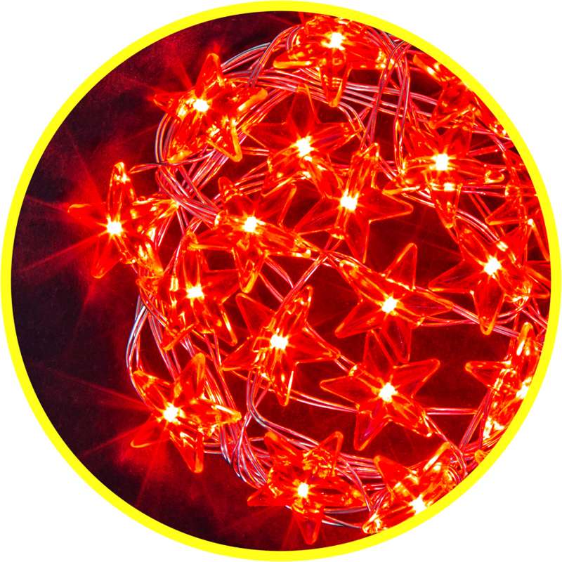 Возможность осуществить свои смелые идеи в украшении дома, офиса, общественного пространства. Искать розетку не потребуется - гирлянда работает от 2 пальчиковых батареек. Тип гирлянды - фигурки красные звездочки ; материал фигурки - ПВХ; цвет свечения - красный; режим постоянного свечения; питание - 2 АА (в комплект не входят); общая длина - 2,3 м; длина провода до первого светодиода - 0,3 м; количество светодиодов - 20 шт; расстояние между фигурками - 10 см; тип провода - медный провод; степень защиты - IP20; температура эксплуатации от - 20 до +40°С;